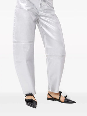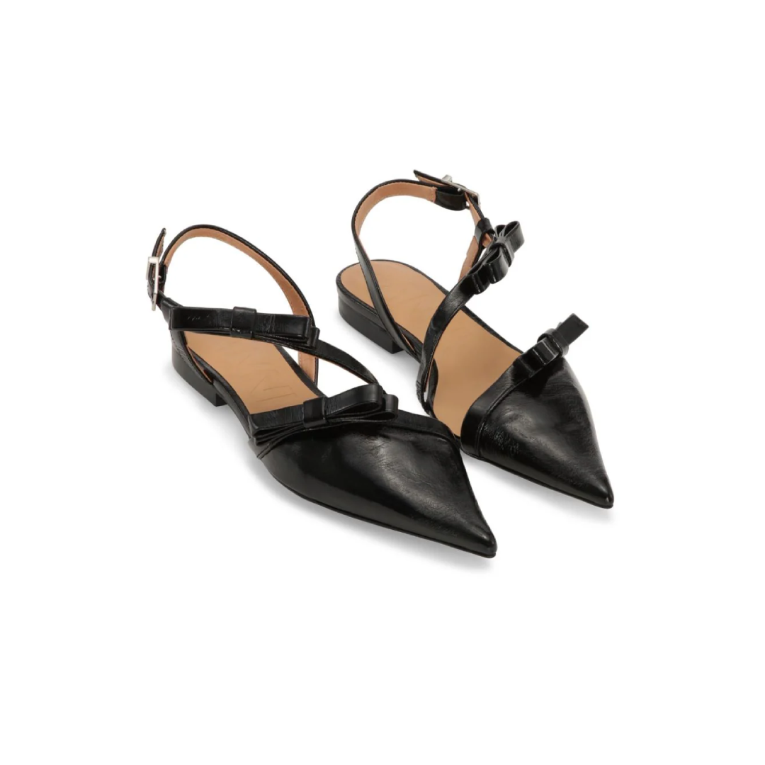 Negro, poliéster reciclado, detalle de moño, detalle en tono plateado con logo grabado, puntera en punta, tira en el tobillo con hebilla, plantilla con logo y suela de goma. Este artículo está elaborado con un mínimo de 50% de materiales reciclados o suprarreciclados. Para las prendas hechas de materiales sintéticos reciclados, recomendamos el uso de una bolsa de lavado de microfibra para asegurar que no se liberen microplásticos que puedan contaminar el agua en el proceso. Descubre más sobre lo que hace a un producto Responsable en nuestra página de Criterios Sustentables.
